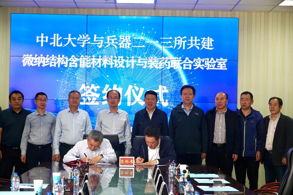 5月10日,中国兵器工业第二一三研究所党委书记、常务副所长张广生一行来校调研并进行合作签约。双方合作共建微纳结构含能材料设计与装药联合实验室签约仪式在瑾瑜国际会议中心第五会议室举行。校党委书记沈兴全与张广生等见签。我校副校长李东光与二一三所总工程师、兵器集团首席科学家褚恩义代表双方签约。